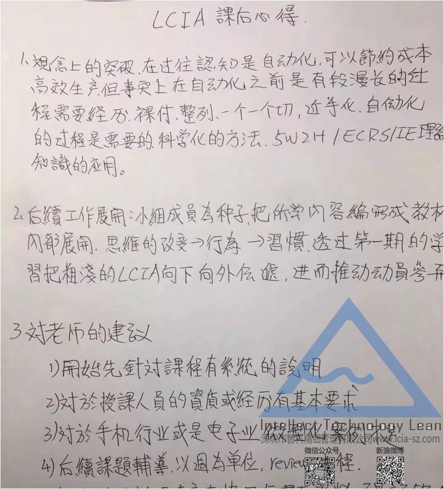 此次3天2夜的LCIA低成本智能自动化的解密,老师的授课可谓淋漓尽致,引领精英们深入解读LCIA。根据不同的生产企业,不断更新授课内容及各种学习案例,让学员精英们深圳地读解了LCIA的同时,从中发掘改善思维。并直接运用企业生产中,可谓即学即可,并在LCIA专家樊老师的指导下,直接对生产能力进行了改善。